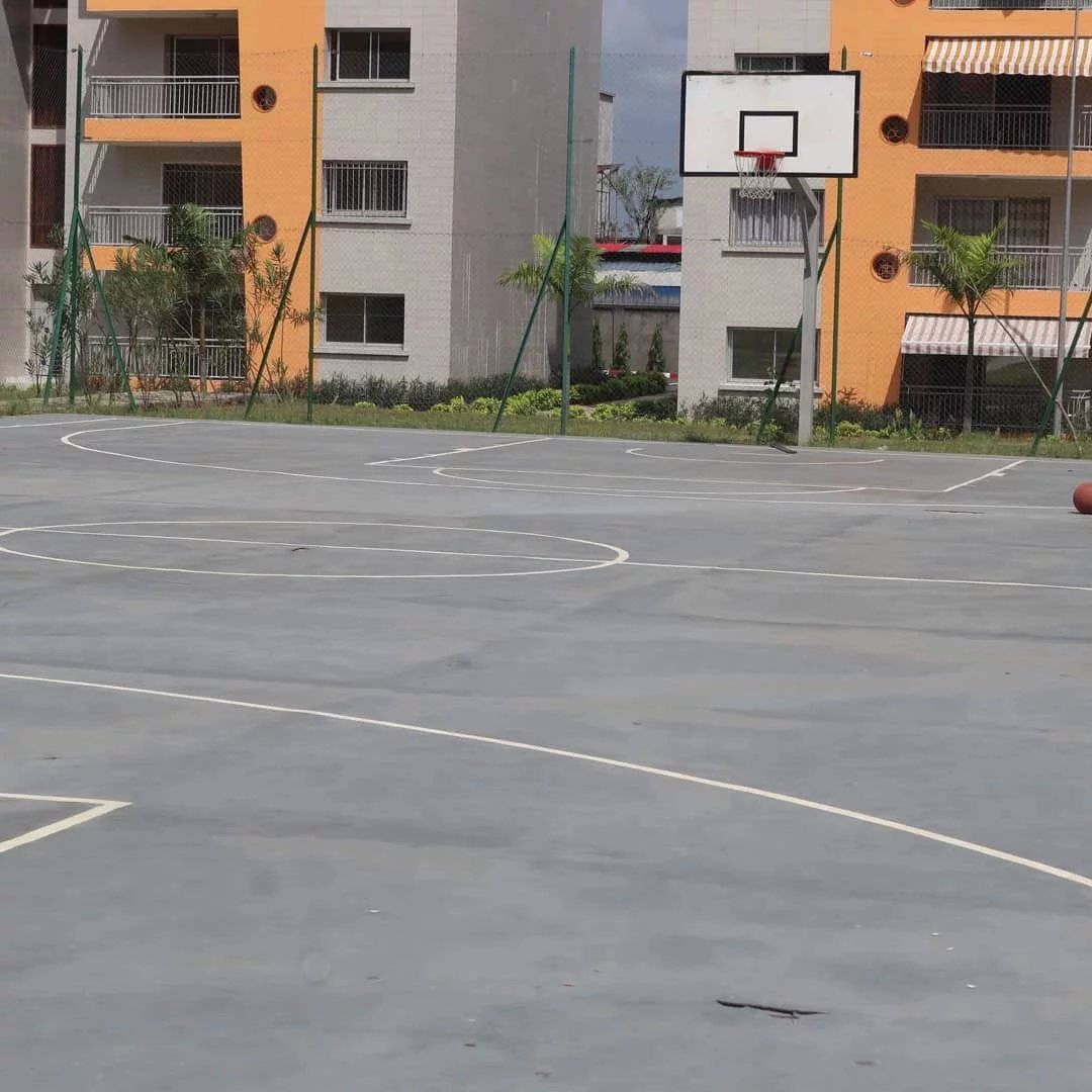 Piscine commune couverte, aire de jeux pour enfants, terrains de basket et de maracana.